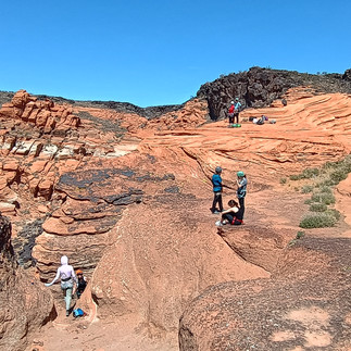 Exit - Walk out takes about 10 min. Head to the north and follow the 40 ft scramble up a moderate slopey rock with a handline (usually) and mochi steps. Follow the gully up about 20 ft and then make your way east (right) and back up to the rappel area.